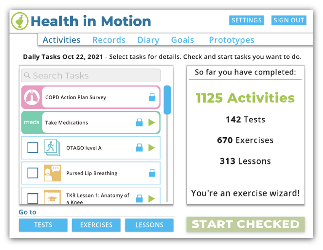 - A redesigned Main Menu with tabs for different activity types and a Daily Tasks menu where users can see all of their patient-assigned tasks and activities to complete