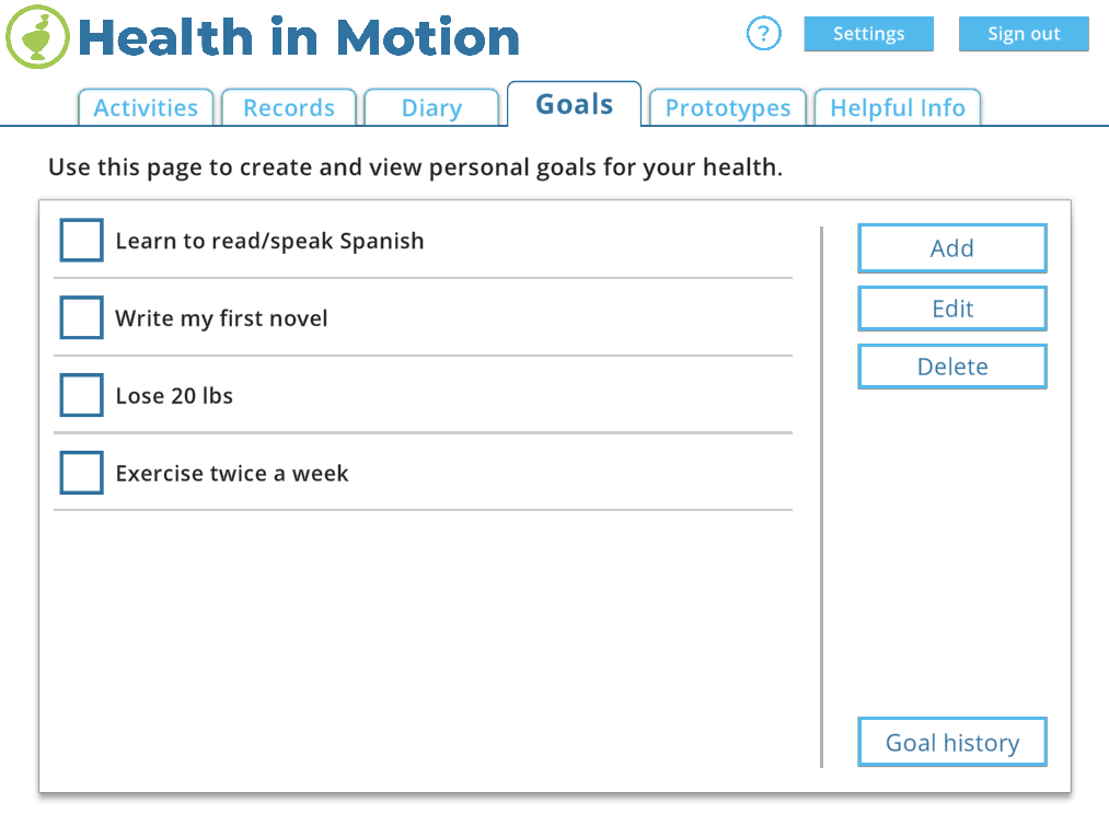 - A Goals Menu which works like a to-do list for players to keep track of their current and previous goals.