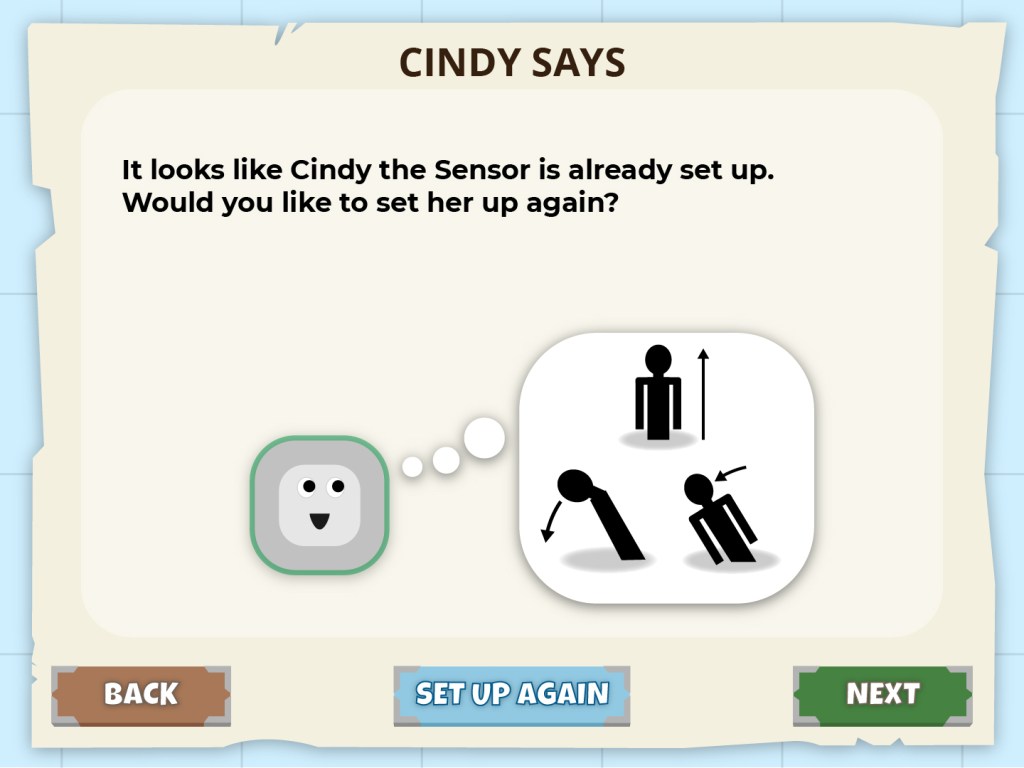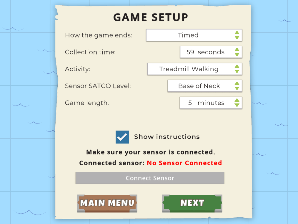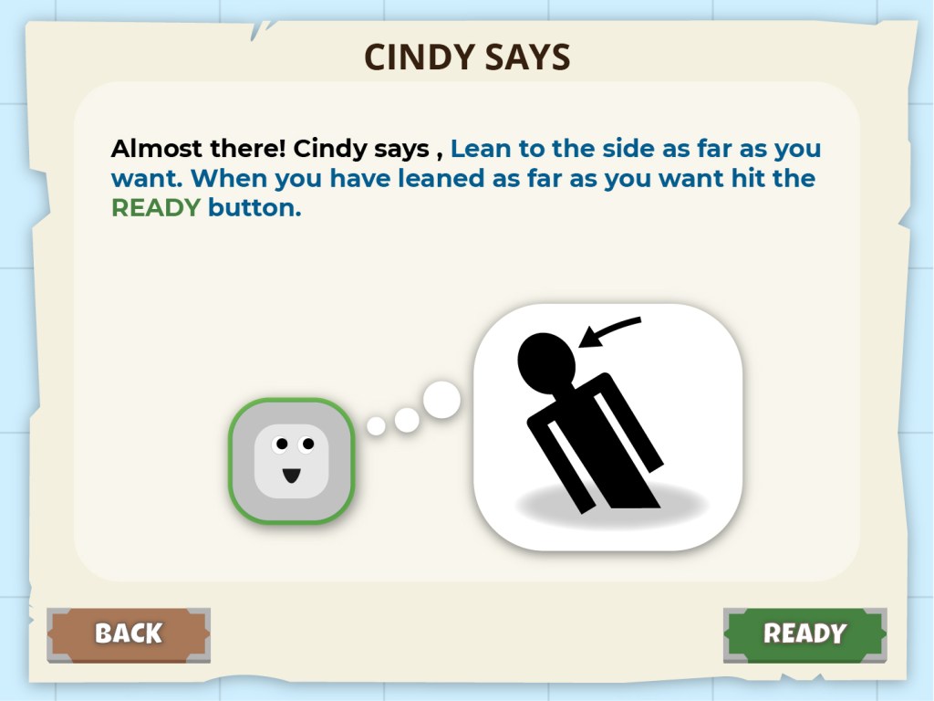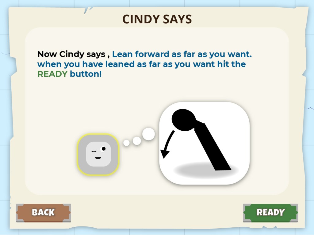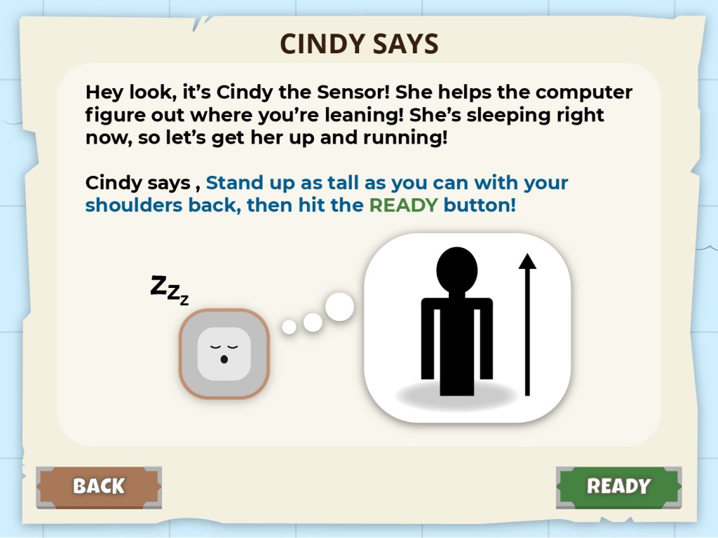 After connecting the sensor, it then has to be calibrated for the child’s posture. This is done by setting the bounds of how far the child is able to move: their best posture, their worst, and how for side-ways they can lean. After capturing their data points, the game is able to track the child’s performance for gameplay.
