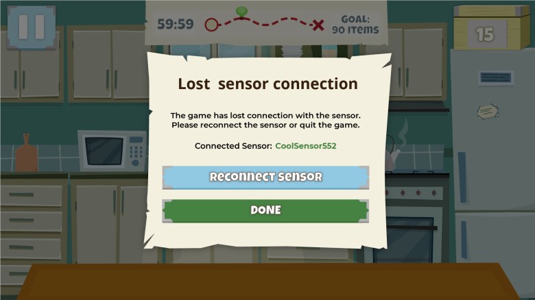 One major challenge I had to solve was how to reconnect the sensor if it got disconnected during gameplay. Without being able to reconnect during the gameplay section, the clinician would have to restart the game and do the calibration steps all over again; which would cut down the time available for physical rehabilitation, and interrupt the process of collecting for the child.